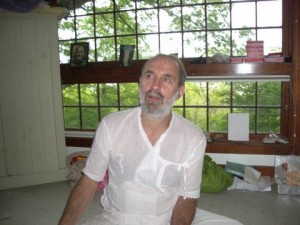 Shyamdas in his home mandir overlooking the Hudson River, in West Camp