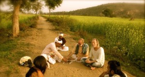 Mohan serves up prasad to Shyamdas and his group of Braj pilgrims