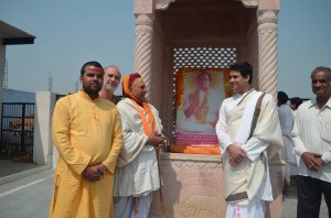 Shyamdas joins Shri Milan Baba, Panditji, and Gokulesh Adhikari at an installation of a Shri Prathameshji citra at the Prathamesh Goshala outside of Jatipura, Braj
